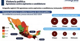 Al publicar el Reporte de Violencia Política de Integralia, la firma de asesores reporta que de los cuatro asesinatos, uno de las víctimas militaba en el pa... 2024-06-01 21:27:58 |