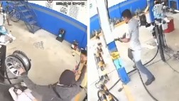 'Te voy a meter un balazo': ladrón asalta gasera y el despachador lo baña con varios litros gas |