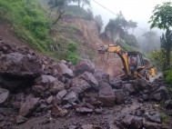 Rocas de gran tamaño mantienen bloqueada la carretera estatal Molango-Xochicoatlán en el estado de Hidalgo.