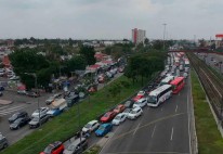 | Comerciantes de muebles afectados por inundaciones bloquean Calzada Ignacio Zaragoza en Iztapalapa, a la altura del Puente de la Concordia.