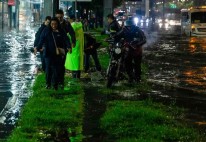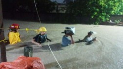 | Sin soltarla de la mano lucha por mantenerla a salvo en medio de las fatales inundaciones que dejaron decenas de familias atrapadas.