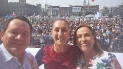 Dejando atrás los asesinatos registrados durante toda la semana en el estado, Nahle se fue al Zócalo a mostrar su respaldo a Sheinbaum |