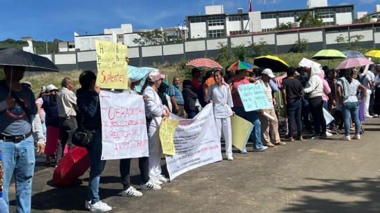 Ciudad de México.- Trabajadores del Hospital Regional “Presidente Benito Juárez” de Oaxaca, adscrito al ISSSTE, se manifestaron en el marco de la visita del presidente Andrés Manuel López Obrador y la Presidenta electa Claudia Sheinbaum al municipio de Santa Cruz Xoxocotlán, municipio conurbado a la capital del estado.
