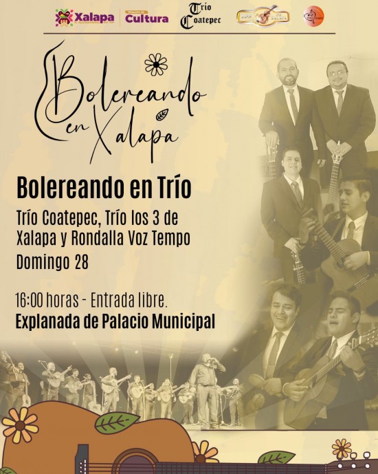Como parte de las actividades que promueve el Ayuntamiento de Xalapa, a través de la Direccion de Cultura, y rumbo a la gran final del Primer Concurso Veracruzano del Bolero que se realizará el 28 de septiembre, hoy inicia el programa musical “Bolereando en Xalapa”, actividad que contará con destacados exponentes del género. El bolero fue declarado por la UNESCO Patrimonio Inmaterial de la Humanidad en diciembre de 2023. México es uno de los países que está llamado a la preservación sostenible de este patrimonio. El bolero ha tenido grandes exponentes como Agustín Lara, Armando Manzanero, Consuelito Velázquez, César Portillo de la Luz, Lucho Gatica, Álvaro Carrillo y Bobby Capó, por mencionar algunos. "Bolereando en Xalapa" inicia este viernes a las 18:00 horas con la inauguración de la exposición “Yo nací con la luna de plata, y nací con alma de pirata, homenaje a Toña la Negra”, muestra de carteles a cargo de alumnos de la Licenciatura en Diseño de la Universidad Anáhuac, que podrá disfrutarse hasta septiembre en la Galería del Corredor Cultural "Carlos Fuentes". El sábado a las 18:00 horas, en el Museo de la Música Veracruzana, se realizará el concierto “Su majestad el bolero”, con el grupo Bolerazz; el martes 16 a las 18:00 horas, en el mismo recinto, se rendirá un tributo al compositor Rubén Fuentes, uno de los máximos exponentes del bolero ranchero. Este concierto estará a cargo del dueto integrado por Gema y Ricardo Juárez. El miércoles 17 a las 18 horas, en el Museo de la Música Veracruzana, el dueto de Grace y Miguel interpretará el programa “Grandes boleros de la historia”; el viernes 19 a las 18:00 horas, al Museo de la Música Veracruzana llega el Trío Coatepec para mostrar todo su romanticismo con un programa especial que incluye música de Los Dandy’s, Los Panchos y Los Tres Ases. El domingo 28 de julio a las 16:00 horas, en Palacio Municipal, se ofrecerá un concierto especial con lo más selecto del género bohemio a cargo del Trío Coatepec, Los Tres de Xalapa y la Rondalla Voz Tempo. Para más información se puede consultar la cartelera en la página de Facebook Cultura Xalapa. |