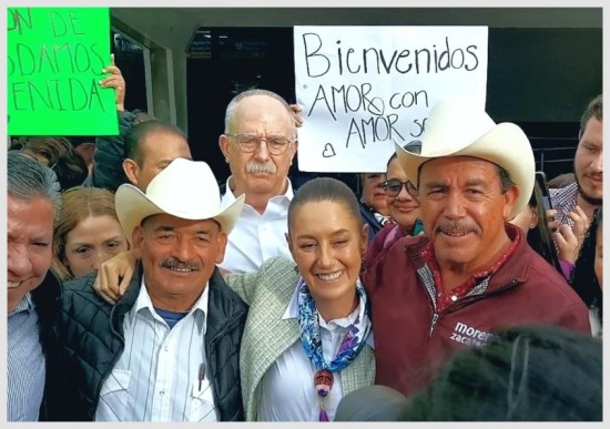 Zacatecas.- La mañana de este viernes arribó a la entidad Claudia Sheinbaum Pardo, presidenta electa de México, para acompañar en su gira de trabajo al presidente Andrés Manuel López Obrador, en un evento con representantes del sector agropecuario.