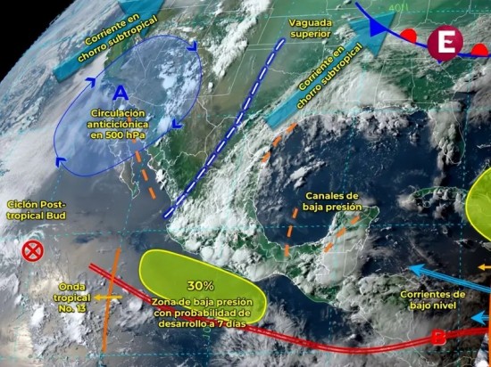 El clima para este sábado 27 de julio de 2024 prevé lluvias fuertes a muy fuertes, acompañadas de descargas eléctricas, rachas de viento y posible caída de granizo en el noreste, occidente, centro y sureste de la República Mexicana. El SMN también indicó que es posible que se formen tornados o torbellinos en regiones de Sonora, Chihuahua, Coahuila, Nuevo León, Tamaulipas, San Luis Potosí, Jalisco, Guanajuato, Querétaro, Hidalgo, Estado de México, Puebla y Tlaxcala. El organismo dependiente de la Comisión Nacional del Agua (Conagua) anticipó que canales de baja presión sobre el noreste, oriente, occidente, centro y sureste del país, aunados a la humedad proveniente del Golfo de México y el Océano Pacífico, originarán lluvias puntuales intensas en Tamaulipas, San Luis Potosí, Guerrero, Oaxaca y Chiapas, aunque persistirá el ambiente extremadamente caluroso en el noroeste del territorio nacional, con temperaturas superiores a 40 °C en zonas de Baja California, Baja California Sur y Sonora. Clima México hoy 27 de julio de 2024: En estos estados lloverá El SMN alertó que para este sábado 27 de julio de 2024 se esperan lluvias muy fuertes con puntuales intensas, de 75 a 150 mm, en: Tamaulipas San Luis Potosí Guerrero Oaxaca Chiapas Lluvias fuertes con puntuales muy fuertes, de 50 a 75 mm, en: Sonora Chihuahua Nuevo León Jalisco Guanajuato Querétaro Hidalgo Morelos Puebla Veracruz Intervalos de chubascos con lluvias puntuales fuertes, de 25 a 50 mm, en: Durango Sinaloa Aguascalientes Nayarit Colima Michoacán Estado de México Ciudad de México Tlaxcala Tabasco Intervalos de chubascos, de 5 a 25 mm, en: Baja California Coahuila Zacatecas Campeche Yucatán Quintana Roo Lluvias aisladas, de 0.1 a 5 mm, en: Baja California Sur Clima CDMX hoy 27 de julio 2024: Lleva el paraguas El SMN dio a conocer que el clima para la Ciudad de México este sábado 27 de julio de 2024 será de ambiente fresco a templado, con bancos de niebla en zonas altas del Valle de México por la mañana. En tanto, por la tarde habrá ambiente templado a cálido, cielo nublado y chubascos con lluvias puntales fuertes, las cuales podrían estar acompañadas de descargas eléctricas y posible caída de granizo. En su pronóstico del tiempo para la CDMX el SMN indicó que habrá viento de componente sur de 10 a 25 km/h con rachas de hasta 45 km/h en zonas de tormenta. La temperatura mínima pronosticada es de 14 a 16 °C y la temperatura máxima de 24 a 26 °C. Tiempo hoy 27 de julio de 2024 en Nuevo León Para Nuevo León, el pronóstico del tiempo hoy 27 de julio del SMN indica que por la mañana habrá ambiente templado y frío con bancos de niebla en zonas serranas, mientras que durante la tarde, persistirá el ambiente caluroso a muy caluroso y habrá cielo medio nublado a nublado con lluvias puntuales intensas que podrían ocasionar encharcamientos, inundaciones y deslaves, e incremento en los niveles de ríos y arroyos. El SMN alertó que las lluvias en Nuevo León podrían estar acompañadas de descargas eléctricas y posibles granizadas. Agregó que habrá viento de dirección variable de 15 a 30 km/h en la región, con rachas de 50 a 70 km/h y posibles torbellinos o tornados. La temperatura máxima que se alcanzará en Nuevo León este sábado irá de los 30 a 35 °C. ¿Qué es el monzón mexicano, fenómeno que provoca lluvias? El monzón mexicano, también conocido como monzón de Norteamérica, es un fenómeno que se presenta entre finales de junio y principios de julio y es generado por los vientos cálidos y húmedos que provienen del Océano Pacífico y el Golfo de California, los cuales convergen sobre el noroeste de México, de acuerdo con la Comisión Nacional del Agua (Conagua). Este fenómeno, que puede extenderse hasta septiembre, se caracteriza por generar lluvias intensas en regiones del noroeste del país, principalmente en Baja California, Baja California Sur, Chihuahua, Durango, el norte de Nayarit, Sinaloa y Sonora, así como en el occidente y suroeste de Estados Unidos. |