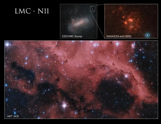 Ofrece Hubble nueva imagen de nebulosas N11 en Gran Nube de Magallanes. | ||||||