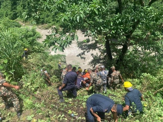 | El vehículo de salió de la autopista Prithvi y se precipitó hacia un río caudaloso. La parte superior del vehículo quedó destrozada antes de detenerse en la orilla rocosa, al borde de las turbias aguas del Marsyangdi. | ||||||