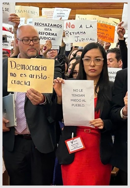 En la Corte, las fricciones subieron de tono y se generaron confrontaciones verbales, primero entre trabajadores a favor de la enmienda constitucional y quienes tienen días expresando su desacuerdo con la propuesta legislativa de que ministros, magistrados y jueces sean elegidos por voto popular, lo que provocó una discusión entre la ministra Lenia Batres Guadarrama y el ministro Alberto Pérez Dayán, porque los opositores a la reforma se presentaron de manera sorpresiva en la sesión privada de la segunda sala. La ministra Batres pide que le garanticen sus derechos Ante las protestas en la Corte y pancartas en su contra que han colocado afuera de su oficina, la ministra Lenia Batres envió a la ministra presidenta, Norma Piña, un oficio fechado el 27 de agosto pasado en el que le pide que se garantice mi acceso y tránsito libre para participar en el pleno y las salas, pues de otra forma se impide el ejercicio de la función constitucional que se me ha encomendado. En la Judicatura la movilización se realizó con tranquilidad y hasta la consejera Lilia Mónica López Benítez encabezó un grupo de trabajadores, pero en la Corte, la irrupción de quienes están en desacuerdo generó que quienes están a favor, se expresaran a gritos que se escucharon en el interior del inmueble. Opositores a la reforma convocaron a cerrar todos los accesos de la Corte a partir de las ocho de la mañana de este jueves. En tanto, de manera simultánea, el episodio de confrontaciones en la Corte comenzó alrededor de las 10:30 horas en la sesión privada de la segunda sala, que preside Pérez Dayán, cuando los secretarios de estudio y cuenta sacaron hojas con mensajes que decían: rechazo a la reforma judicial. Pérez Dayán les expresó su solidaridad y con el Poder Judicial en general. Batres reclamó que no era el espacio para pronunciarse a favor o en contra de una disposición de otro poder político de nuestro país. El presidente de la sala le replicó que sólo estaba dando cauce a la libertad de expresión” y le cuestionó en dos ocasiones ¿o usted me la va a limitar? Batres le recordó que el tema no era parte del orden del día y le propuso que si quería incorporarlo al debate lo hiciera. Luego de la manifestación, la ministra pidió al presidente de la sala que también pasara otro grupo de trabajadores que se manifestaron a favor de la reforma. La mayoría eran de las ponencias de ella y de las ministras Yasmín Esquivel y Loretta Ortiz. Después de las manifestaciones en silencio dentro de la sala, los trabajadores de ambos grupos se apostaron en los pasillos afuera del salón. Separados de un lado y otro se confrontaron con gritos y consignas a favor y en contra de la reforma. La ministra Lenia Batres salió a pedir a los trabajadores a favor de la reforma que se mantuvieran tranquilos y no contestaran provocaciones del otro grupo. Acto seguido comenzaron los gritos y consignas entre ambos bandos, unos diciendo ¡Poder Judicial por voto popular!; los otros ¡Si el pueblo se informa, no pasa la reforma! Ante la efervescencia del momento, Pérez Dayán salió a mediar, principalmente con el grupo en contra de la reforma. Que la calma siempre esté presente, les solicitó. |