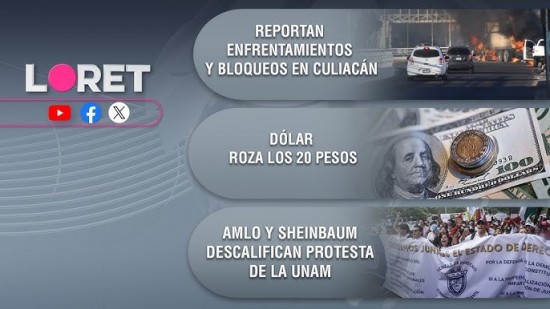 Reportan enfrentamientos y bloqueos en Culiacán; ante incertidumbre, dólar roza los 20 pesos; AMLO y Sheinbaum descalifican protesta de jóvenes de la UNAM contra reforma judicial. | ||||||