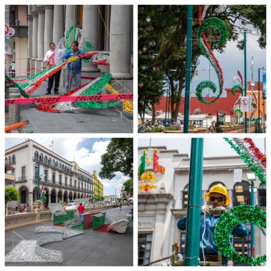 Con el fin de celebrar el 214 aniversario del inicio de la Independencia de México, personal de la Dirección de Alumbrado Público del Ayuntamiento de Xalapa inició la instalación de adornos alusivos al mes patrio en espacios públicos del Centro Histórico. Los adornos que contarán con iluminación decorativa se ubican en sitios como el parque Benito Juárez, el Palacio Municipal y calles como Juan de la Luz Enríquez. |