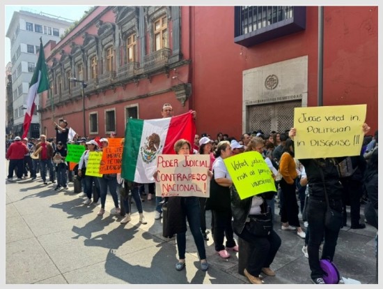 Afuera del histórico edificio, en el Centro Histórico capitalino, alrededor de 250 trabajadores del Primer Circuito y de circuitos aledaños del PJF se manifestaron para advertir a los inversionistas de “los graves riesgos de la reforma” y pedirles que alcen la voz contra la enmienda constitucional durante el Diálogo Anual de Alto Nivel de empresas de EU y México (CEO Dialogue) que se llevará mañana en ese recinto, en el que participará la presidenta Claudia Sheinbaum Pardo. Carlos Avila, secretario de juzgado del Primer Circuito, afirmó que la reforma “socava y pone en riesgo el Estado de Derecho y genera un clima de desconfianza”, sobre todo por el método de elección popular con el que se elegirá a jueces, magistrados y ministros. “Varias calificadoras se han pronunciado al respecto. Muchos bancos también se han pronunciado en relación con los riesgos que conlleva la elección por voto popular de jueces y magistrados. Aunado al clima político que se ha dado en los últimos días, vemos que tanto el Ejecutivo como el Legislativo no han acatado las resoluciones dadas por varios jueces de distrito y tribunales colegiados en los que paralizan la implementación de la reforma judicial”, dijo a este diario durante la manifestación. Entre las consignas que más repitieron lanzaron fue una en crítica a actores políticos que acusan de abrir el paso a la reforma judicial impulsada por el presidente Andrés Manuel López Obrador. “¡Compraron a (Arturo) Zaldívar, compraron a (Guadalupe) Taddei, compraron a los Yunes y a (Javier) Molina también!”, coreaban. Carlos Ávila explicó que la semana pasada presentaron oficios a organizaciones del sector financiero, como el Consejo Coordinador Empresarial, la American Chamber y también en las embajadas de Estados Unidos, de Canadá, de España, de la Unión Europea, “para advertir de estos riesgos”. Originalmente la manifestación iniciaría a las 8 horas afuera de la Bolsa Mexicana de Valores, en paseo de la Reforma, pero al no lograr una convocatoria amplia se movieron al segundo punto, el club de banqueros, en donde iniciaron la protesta a las 10 de la mañana y la mantenían hasta las 12:30 de este lunes. Anunciaron que pese al levantamiento del paro de labores de los trabajadores del PJF, el próximo 16 de octubre, seguirán más acciones contra la reforma, pues tienen esperanza de que la Corte revierta los citados cambios constitucionales. “Sí, hay todavía pendientes tanto juicios de amparo como controversias constitucionales en la Corte, o de acciones de inconstitucionalidad presentadas por partidos de oposición radicadas precisamente en la propia Corte. La Corte falta que emita un pronunciamiento en relación con todos estos recursos legales. Esto sí posibilita que haya un retroceso en la implementación de esta reforma”, señaló Ávila. |