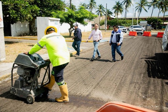 El alcalde de Boca del Río, Juan Manuel Unanue, supervisó la mañana de este martes las obras de fresado que se realizan en la calle Angostura del Fraccionamiento Petrolera, que se va a re encarpetar en los próximos días, para posteriormente realizar los trabajos de señalética y colación de topes.