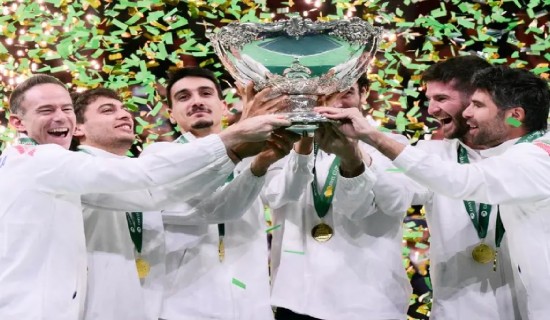 Flavio Cobolli, 22º jugador mundial, logró el punto decisivo en un duro partido en el que tuvo que remontar ante Jaume Munar (36º) por 1-6, 7-6 (7/5) y 7-5, después de que Matteo Berrettini (56º) hubiera ganado en el primer partido de los individuales a Pablo Carreño (89º) por 6-3 y 6-4. Esto era mi sueño. Hemos sido un equpo unido y hemos intentado recrear el espíritu de equipo que llevó a Italia a ganar el Mundial (de fútbol) de 2006", declaró Cobolli. Italia había quedado tocada anímicamente cuando se enteró que debía afrontar esta fase final sin su estrella nacional, Sinner (2º del mundo), y también sin Lorenzo Musetti (8º), pero la semana boloñesa ha sido perfecta, ganando cada uno de sus duelos por 2-0 y brindando momentos de gran emoción sus tifosi con remontadas y partidos para el recuerdo. Se impuso primero a Austria el miércoles en cuartos y después el viernes a Bélgica, sin perder ningún partido en una fase final que se disputaba por primera vez en su territorio, después de varios años en España. Ningún país había ganado tres años seguidos la Davis desde que Estados Unidos encadenara cinco títulos consecutivos, entre 1968 y 1972. |
