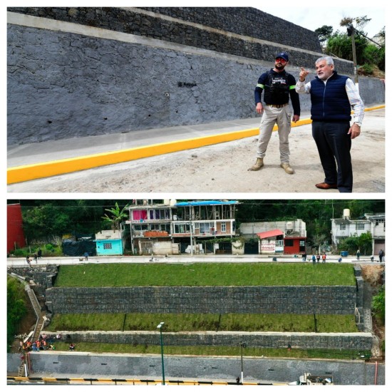 Además, en las laterales del puente Macuiltépetl se construyó un muro de contención con estructuras de gaviones. También se estabilizó el terreno y colocaron drenes para evitar la infiltración de escurrimientos pluviales, todo ello, en beneficio de las familias que habitan en la zona.