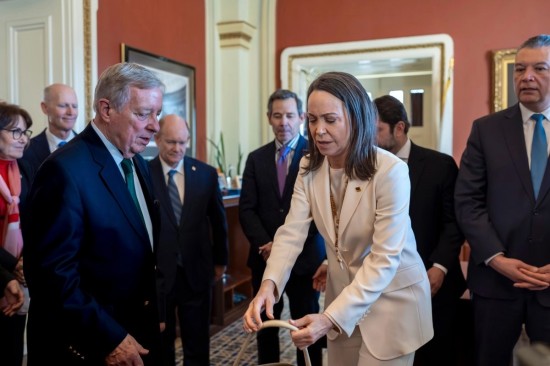 Washington.- La opositora venezolana, María Corina Machado, declaró este jueves que "entregó" su medalla del Premio Nobel de la Paz al presidente estadunidense, Donald Trump, quien ha codiciado ese galardón, considerado intransferible por el comité que lo entrega.
