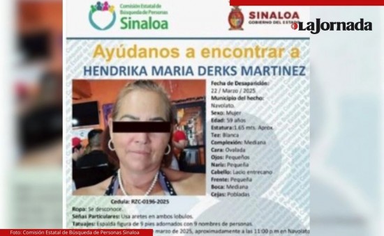 Fueron integrantes del grupo de la asociación civil “Madres en Lucha por tu Regreso a Casa”, quienes el pasado 7 de febrero dieron aviso de la localización de dos osamentas en fosas clandestinas en la comunidad de El Bolsón municipio de Navolato. El colectivo dijo que fue por algunas prendas, una tarjeta de identidad y algunos tatuajes que se alcanzaban a percibir con lo que identificaron los restos en estado avanzado de descomposición que correspondían a la víctima de nombre Hendrika María Derks Martínez de 59 años. La ex policía jubilada se encontraba desaparecida tras ser privada ilegalmente de la libertad, el 22 de marzo de 2025, por grupos de civiles armados que irrumpieron en el domicilio de la colonia Amelia Plata para sacar a la fuerza a tres integrantes de la familia, su hija Kenet de 28 años y dos nietos Kenay de 9 años y Dominik de 10 años en la colonia Amalia Plata en el municipio de Navolato. Trascendió que un día después el 23 de marzo de ese año fue privado de la libertad en el mismo domicilio su esposo identificado con el nombre de Alberto de 40 años, que fue localizado muerto en el ejido Buenos Aires, de la sindicatura de San Pedro Navolato. Según datos 50 días después de la privación de la libertad de la exagente de seguridad, fueron localizados con vida, los integrantes de la familia que se encontraban desaparecidos. La fiscalía general del Estado, está en espera de los resultados de los exámenes de las pruebas de ADN, para hacer oficial la identificación del cadáver a los familiares. |