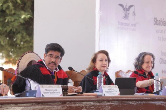 | En entrevista con La Jornada en Tenejapa, el abogado de origen mixteco explicó que presidió la histórica sesión sin toga y con indumentaria tseltal –al igual que otros tres ministros– como muestra de respeto a las tradiciones locales. Precisó que el atuendo, compuesto por chuj negro, estola y bastón de mando, es el que utiliza la autoridad tseltal cuando imparte justicia. | ||||||
