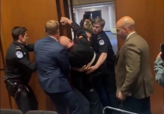 Retiran por la fuerza a ex marine que protestó contra guerra en Irán durante audiencia del Senado.